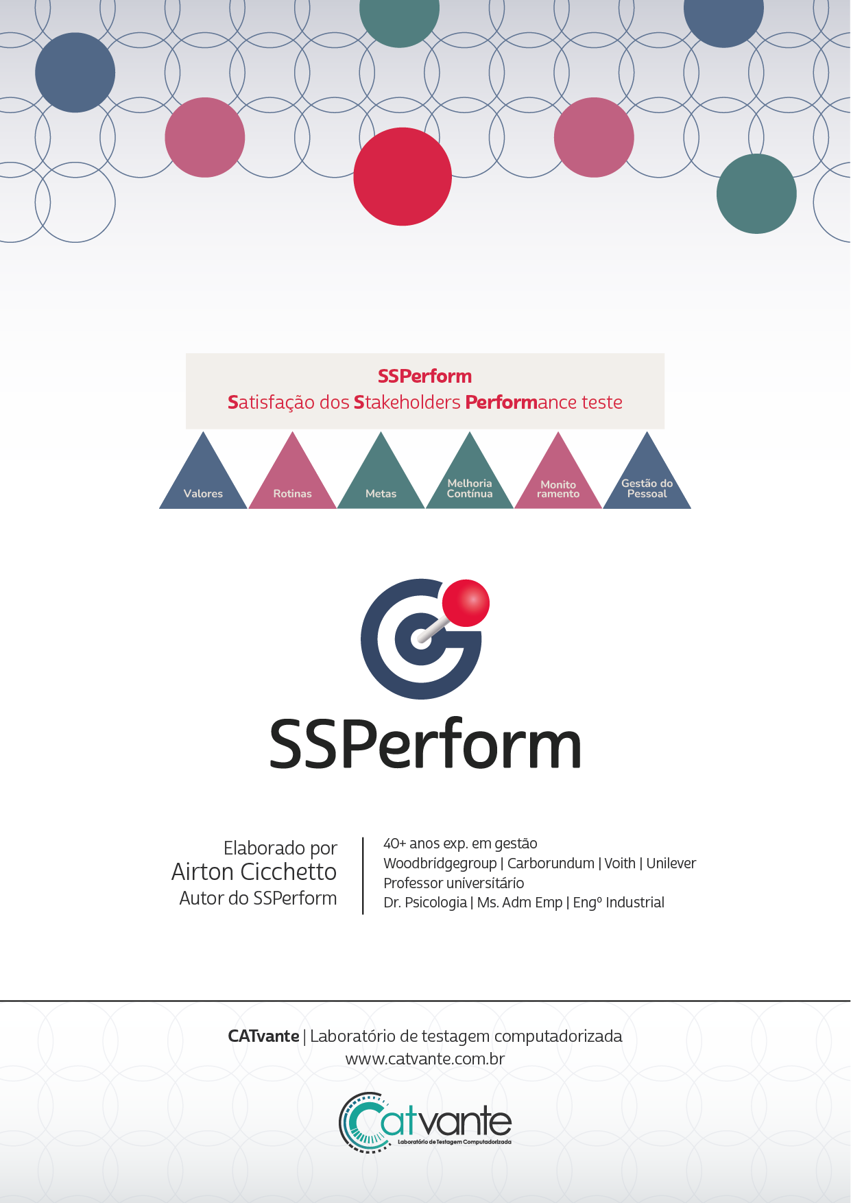 O SSPerform avalia a Performance Geral de uma empresa. Como resultado apresenta o GPI - General Performance Index da empresa. O SSPerform também permite avaliar a Cultura para Performance e como resultado apresenta os escores de seis fatores da cultura da empresa: Valores, Rotinas, Metas, Melhoria Contínua, Monitoramento e Gestão de Pessoal. A devolutiva do SSPerform contém as seguintes informações: 1) GPI, 2) Escores da Cultura para Performance, 3) sugestões de melhorias operacionais, 4) taxa de desconhecimento dos respondentes, 5) relação de itens referentes à Performance e a Cultura que devem ser melhor comunicados aos colaboradores e 6) conceituação, propósito e benefícios da Satisfação dos Stakeholders (Performance Geral) e da Cultura para Performance. O teste contém 98 questões relativas as operações de qualquer empresa, as quais foram desenvolvidas com embasamento prático e teórico. O SSPerform resulta de longa experiência em gestão e dedicação à pesquisa acadêmica do autor do teste. Mais informações sobre o SSPerform podem ser acessadas em: https://ssperform.com.br/